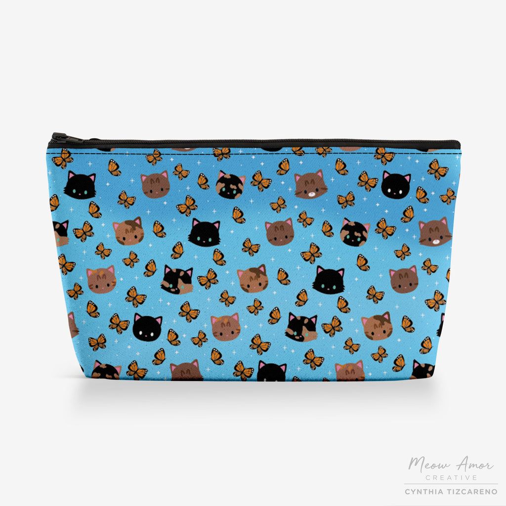 Monarch Butterly Cats Pattern Canvas Zipper Bag