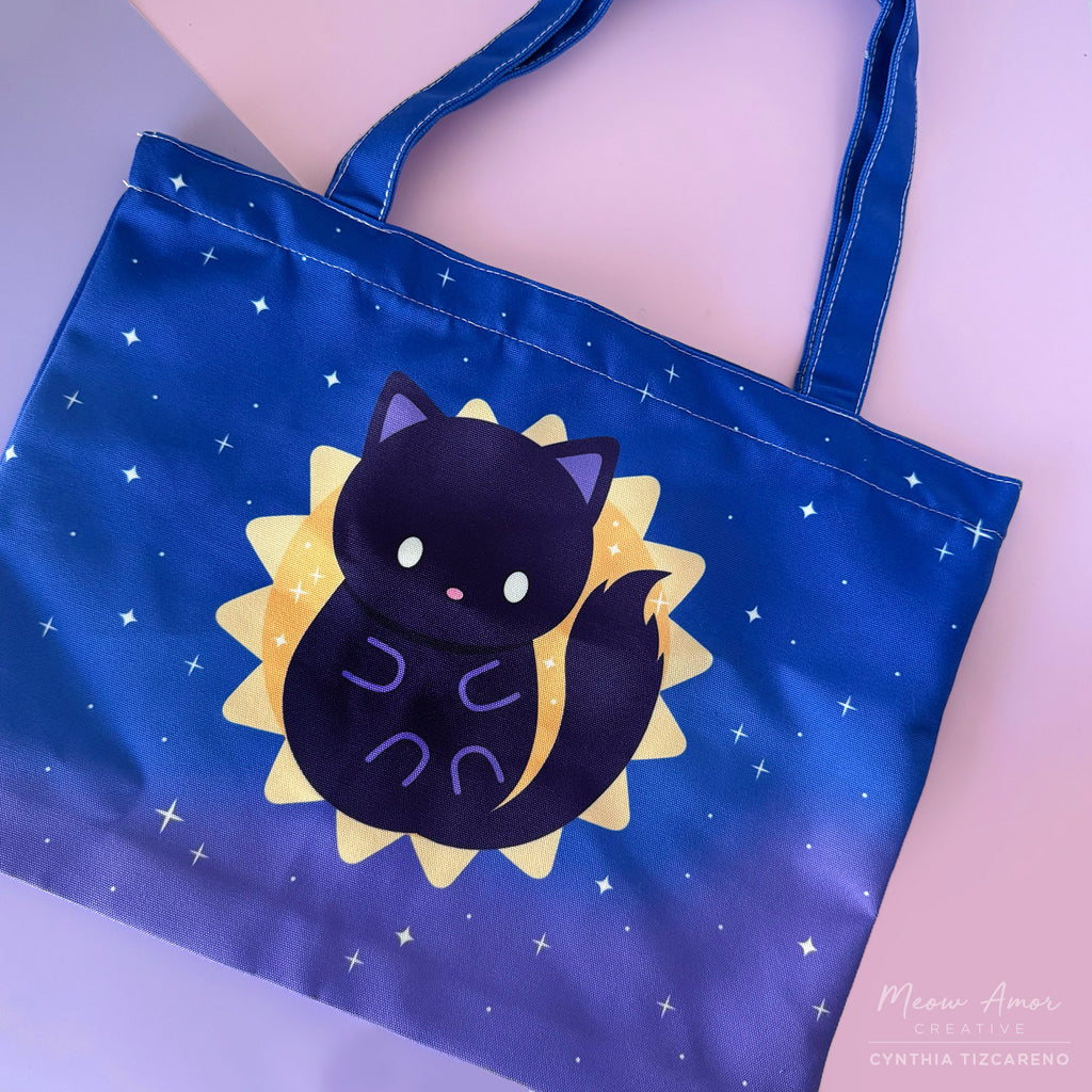 Solar Eclipse Void Cat Canvas Zipper Tote Bag