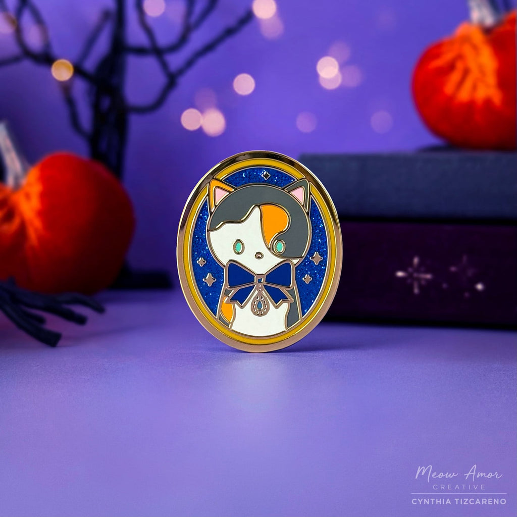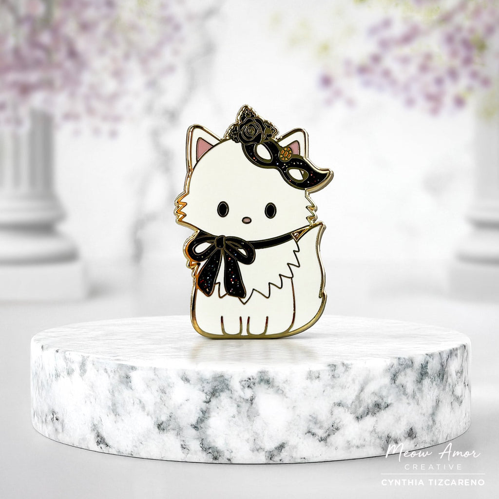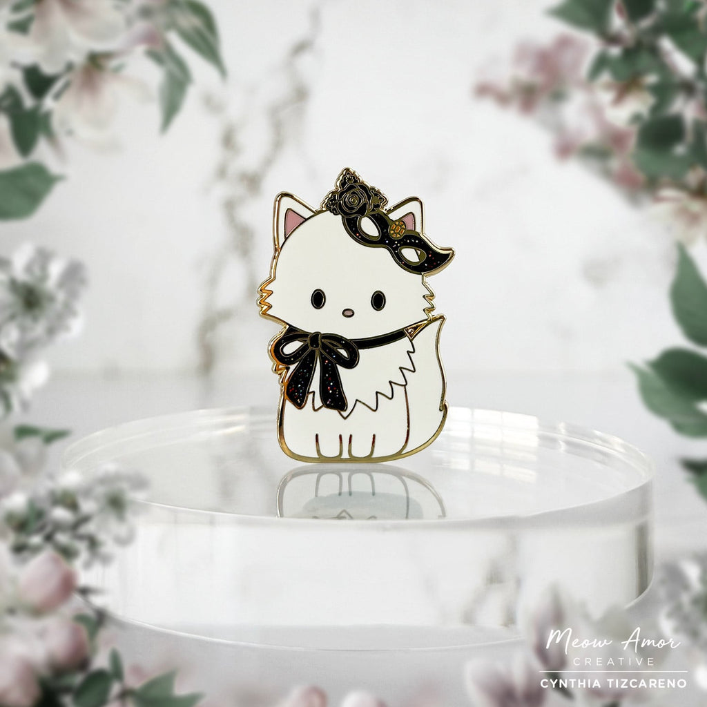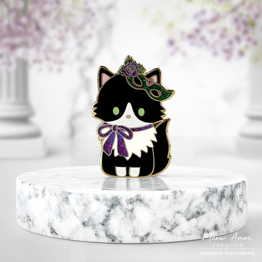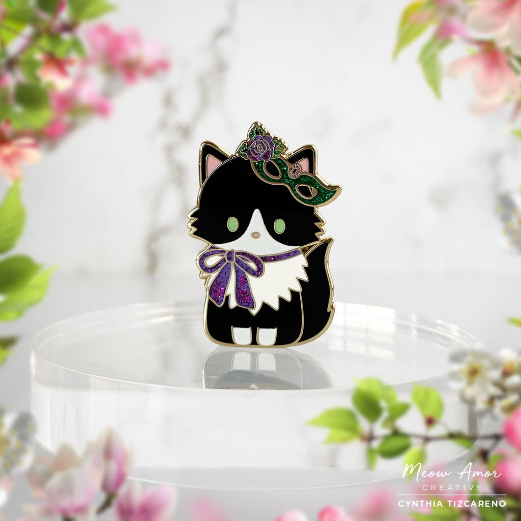 Masquerade Tuxedo Cat Glitter Enamel Pin
