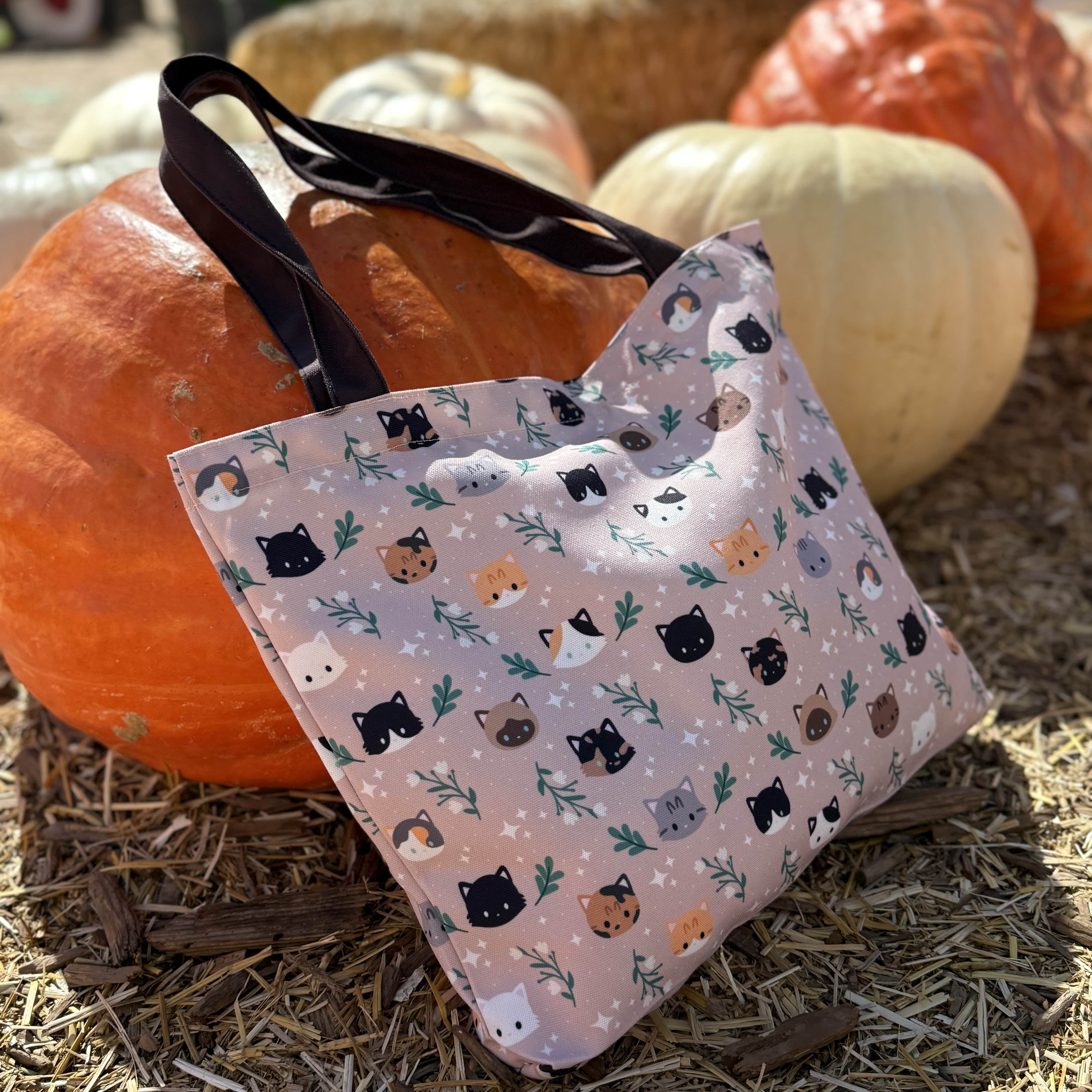 Carry your essentials in style with cute Cat Pattern Canvas Zipper Tote Bag. Made from durable canvas material. Perfect for any occasion, this tote bag is both functional and adorable.