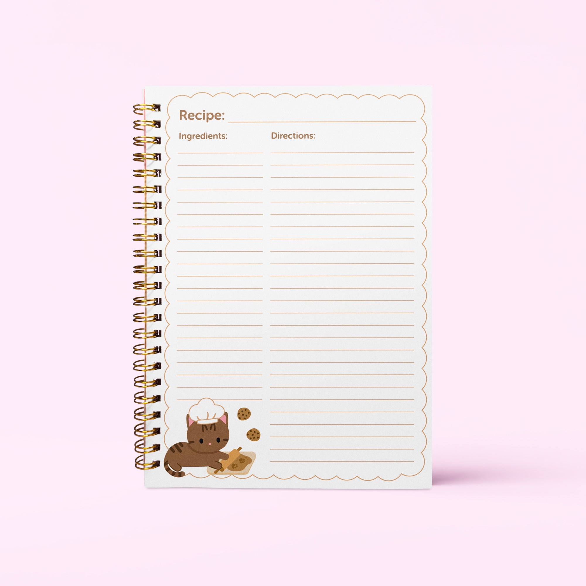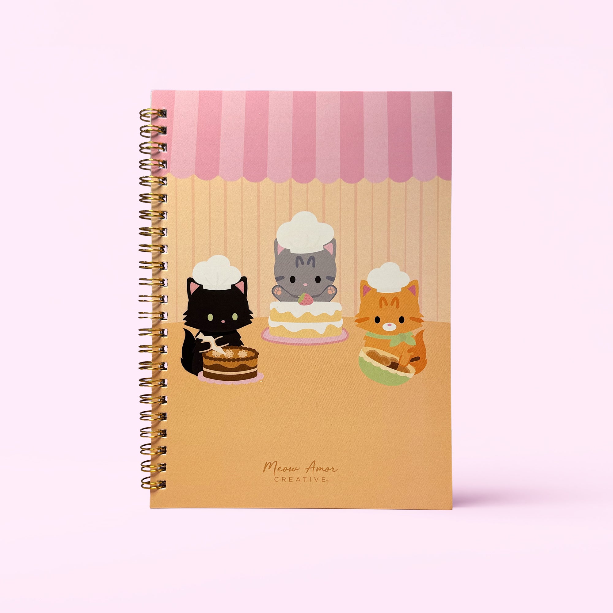 Write down your recipes in this adorable Recipe Book! Front cover features three adorable chef cats on a soft matte cover and gold spiral. With cute inner pages featuring a chef kitty in the corner pages. Perfect for jotting down recipes to easily go back to.