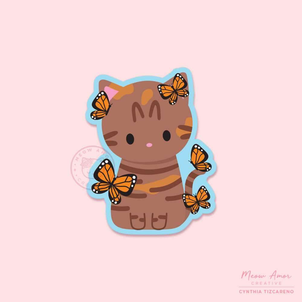 Torbie Cat Monarch Butterfly Vinyl Sticker