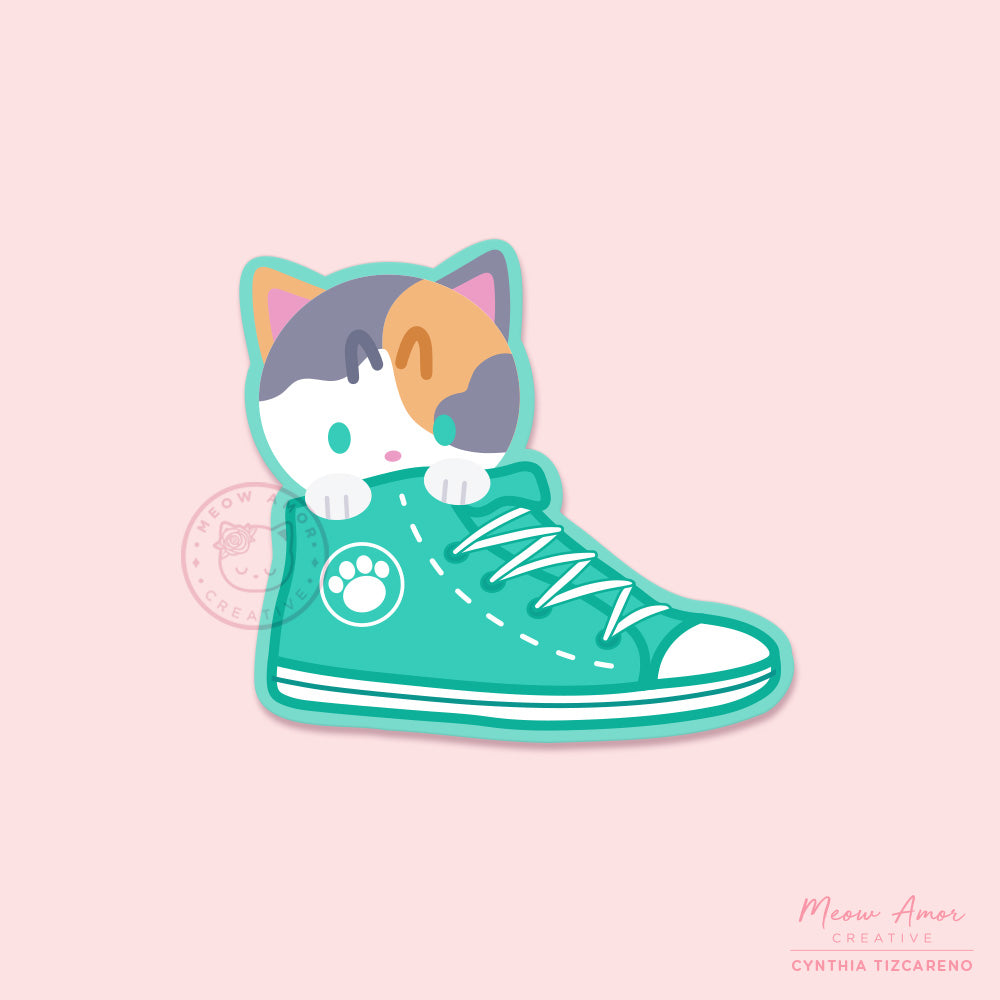 Cat Mint Sneaker Cat Vinyl Sticker is backordered and will ship as soon as it is back in stock.