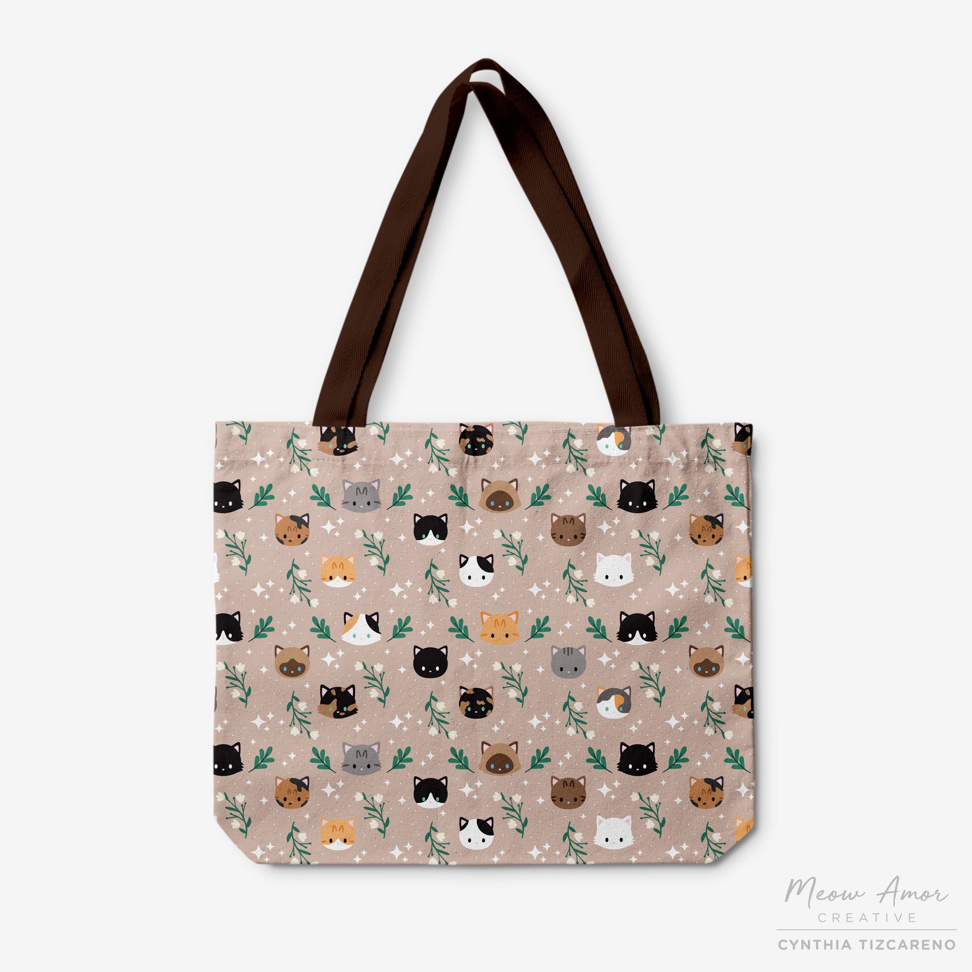 Carry your essentials in style with cute Cat Pattern Canvas Zipper Tote Bag. Made from durable canvas material. Perfect for any occasion, this tote bag is both functional and adorable.