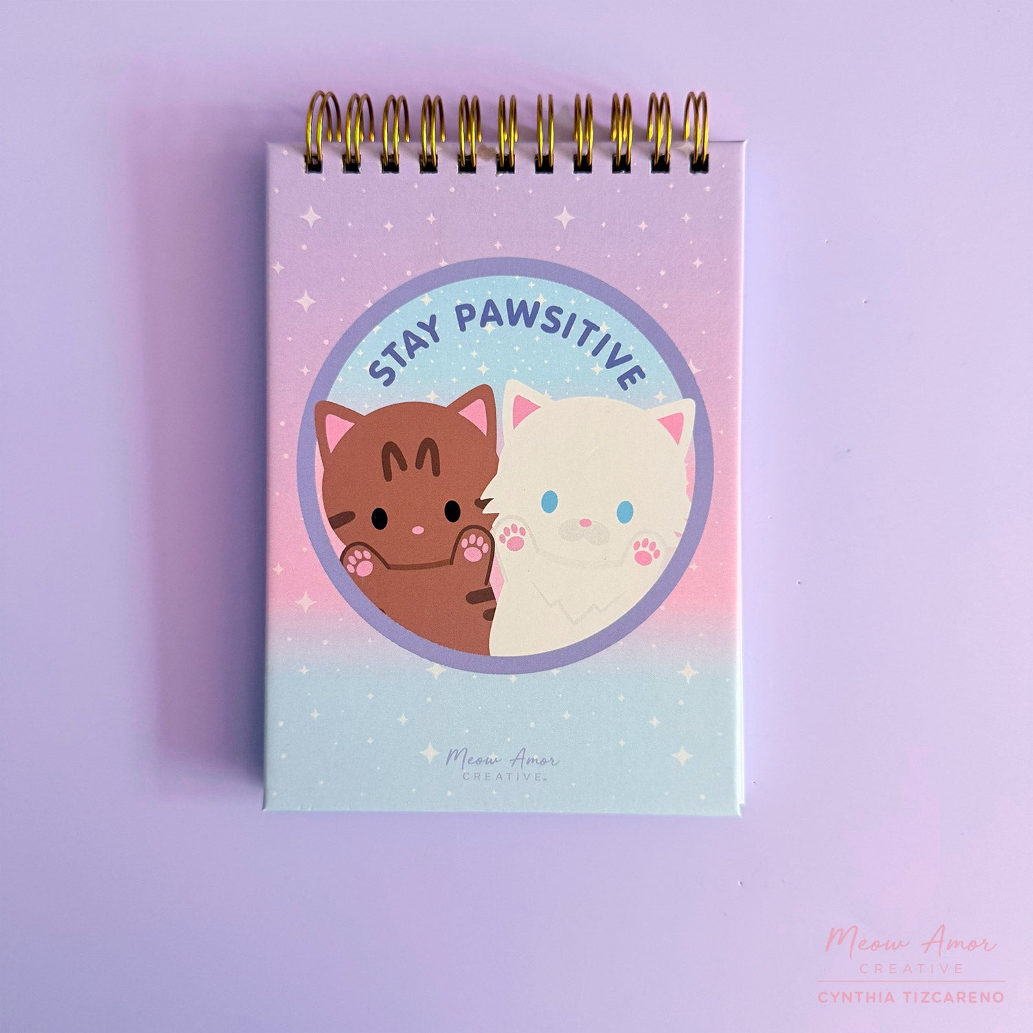Jot down your notes with this adorable Stay Pawsitive Top Spiral Notebook. Featuring two adorable kitties sending pawsitive vibes to you, it's the perfect companion for journaling, sketching, and creative thoughts.