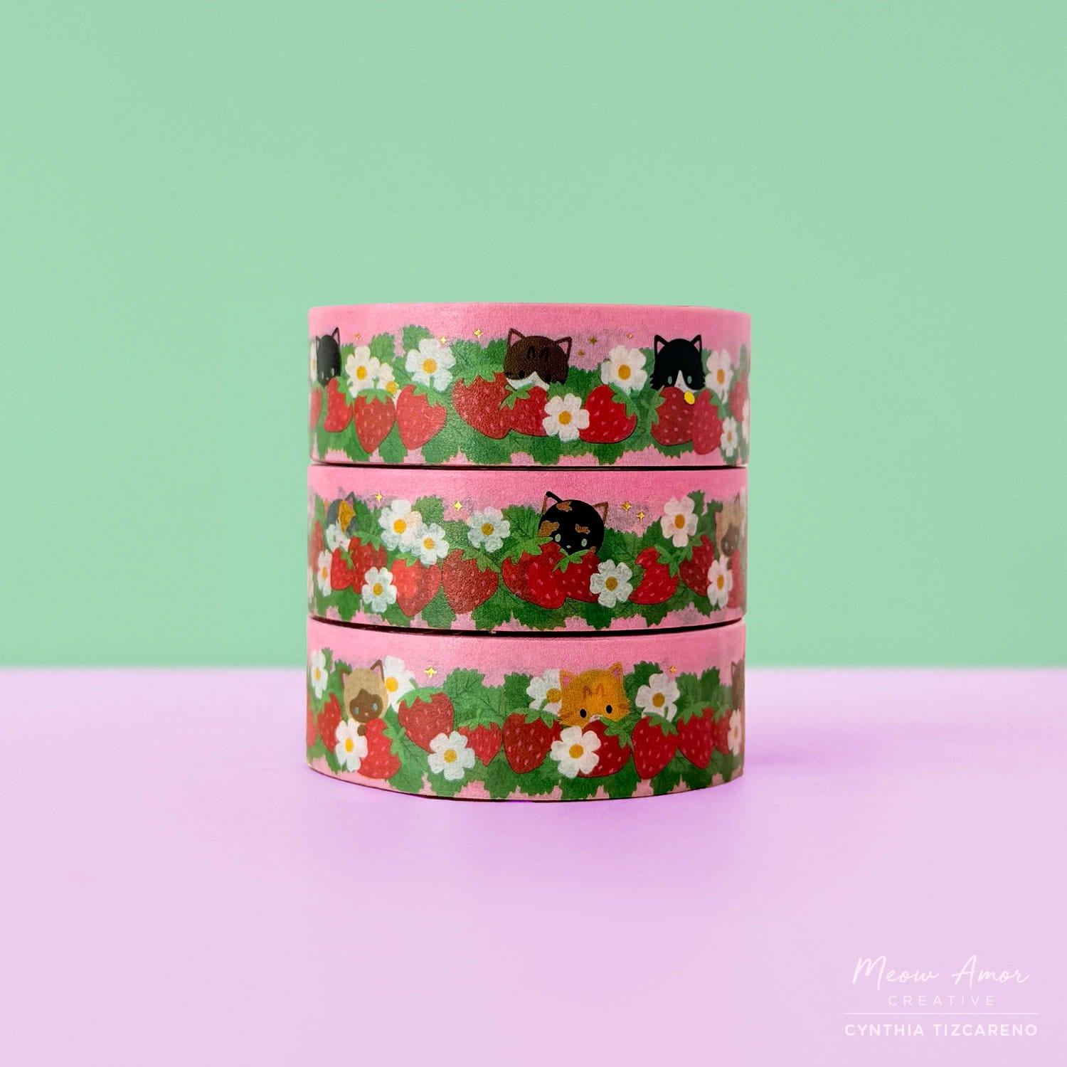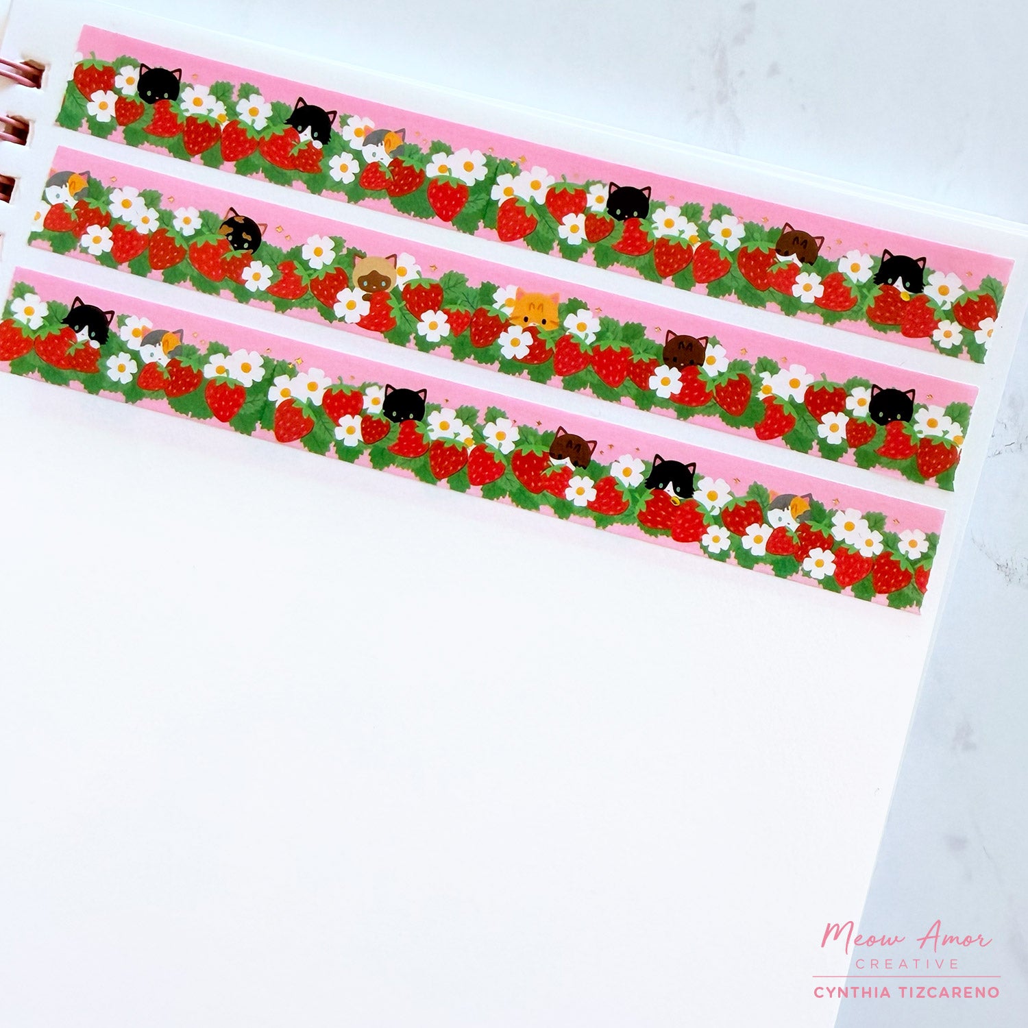 Adorable cats in strawberry field, with small details of gold foil. Ideal for journaling, scrapbooking, and craft projects.