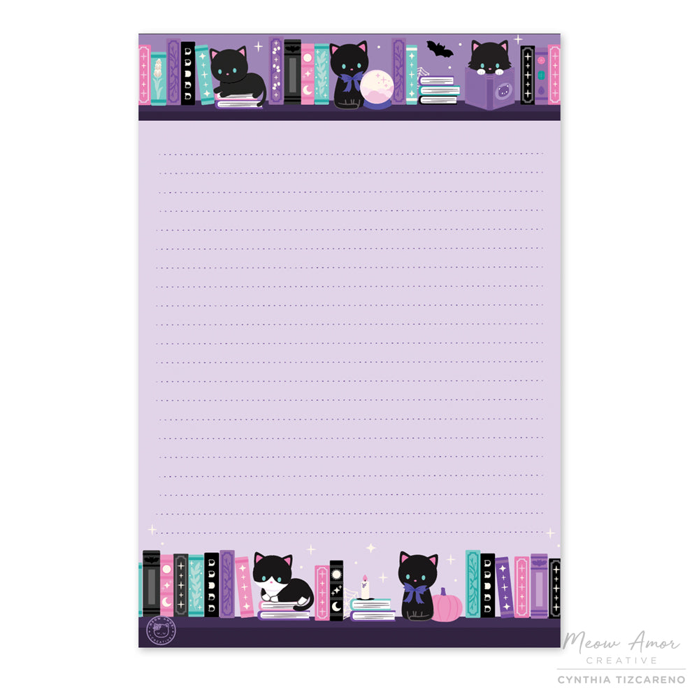 Witch Book Cats Large Notepad is backordered and will ship as soon as it is back in stock.